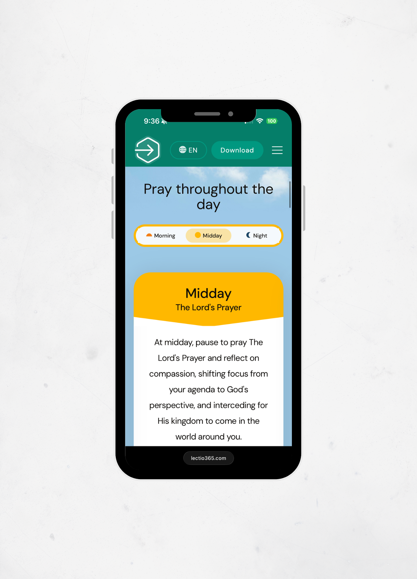 Lectio 365 is a free daily prayer and devotional app that guides you to pause, reflect on Scripture, and connect with God morning, midday, and night—helping you build a daily rhythm of prayer and deepen your faith through Bible-centered reflections you can read or listen to wherever you are.